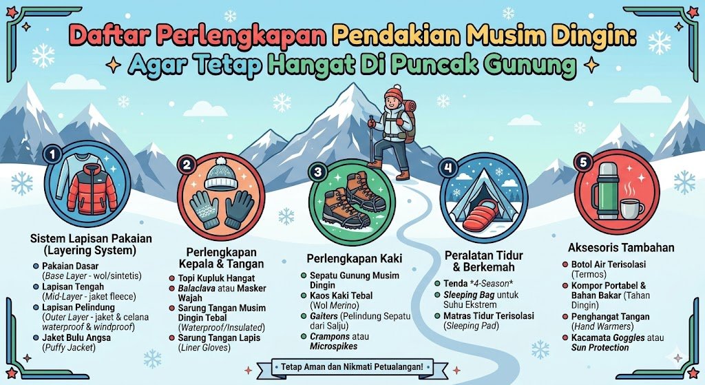 Daftar Perlengkapan Pendakian Musim Dingin Agar Tetap Hangat Di Puncak Gunung