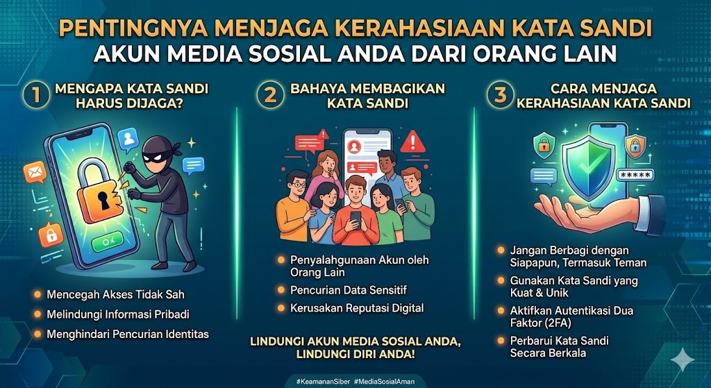 Setiap akun media sosial menyimpan jejak digital yang bersifat pribadi. Jika kata sandi Anda jatuh ke tangan orang lain, mereka dapat dengan mudah mengakses informasi sensitif yang seharusnya tidak konsumsi publik. Peretasan akun sering kali berujung pada pencurian identitas, di mana pelaku menggunakan data Anda untuk kepentingan ilegal. Dengan merahasiakan kata sandi secara ketat, Anda menutup pintu bagi penyalahgunaan data yang dapat merugikan reputasi serta kenyamanan hidup Anda di dunia nyata maupun maya.